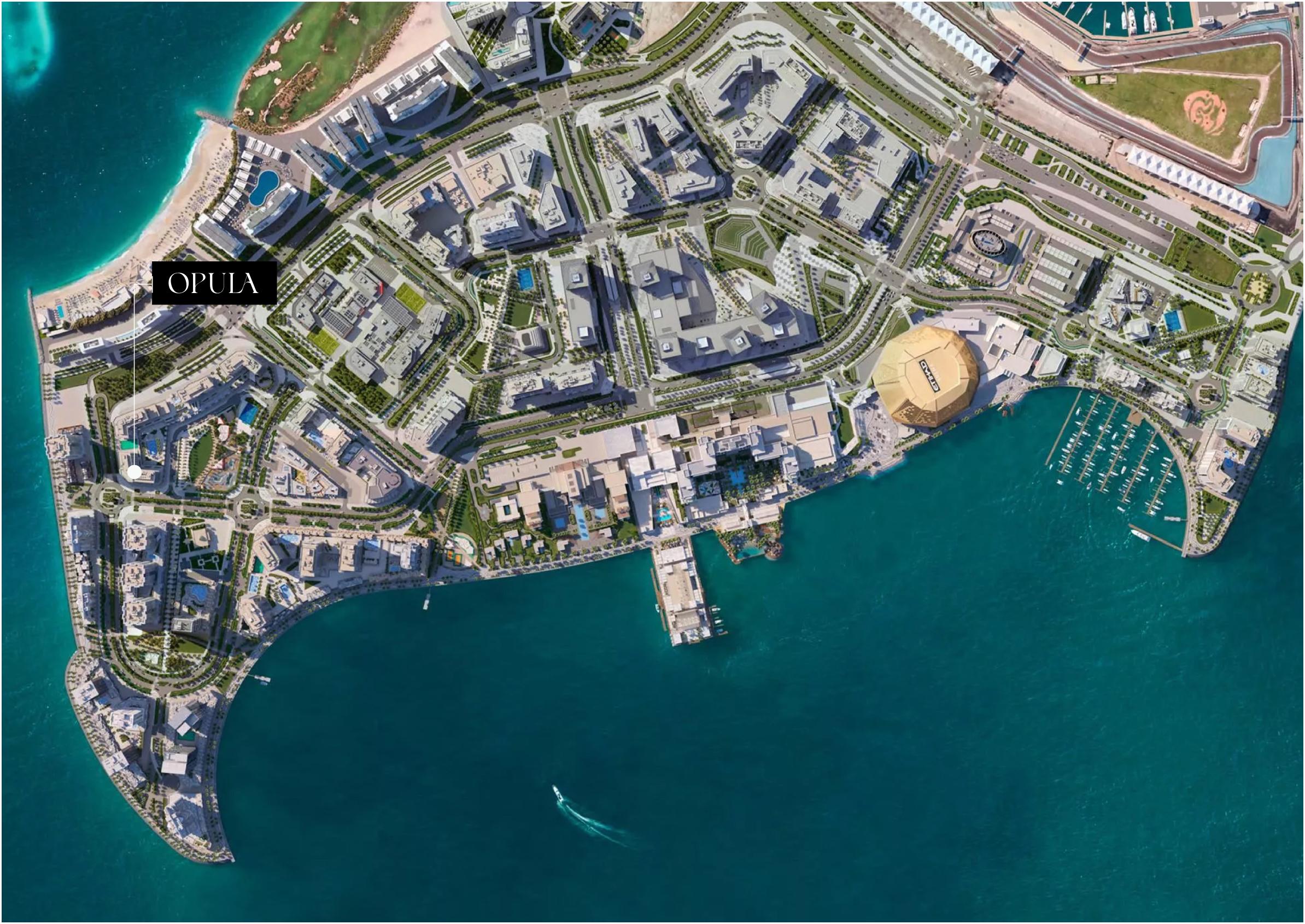 Opula Residences is strategically located in Yas Bay, one of Abu Dhabi’s most vibrant destinations, offering easy access to entertainment hubs, retail attractions, and key landmarks across Yas Island.